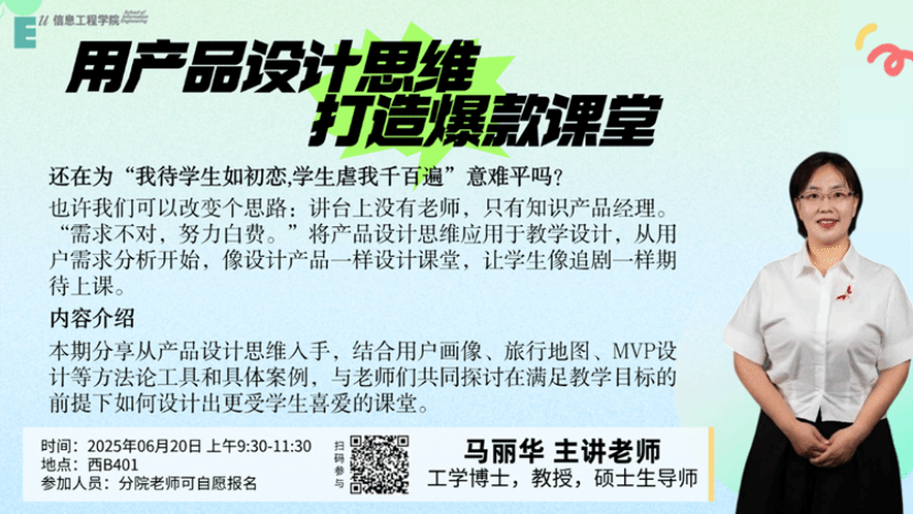 还在为“我待学生如初恋,学生虐我千百遍”意难平?精心准备的讲授,台下却反响平平;明明教学目标清晰,学生却似乎“带不走”核心知识……针对这些老师们普遍存在的困惑,6月20日上午,马丽华老师结合她自己的教学案例,向分院的老师分享一个全新的视角——像打造“爆款产品”一样去设计课程。