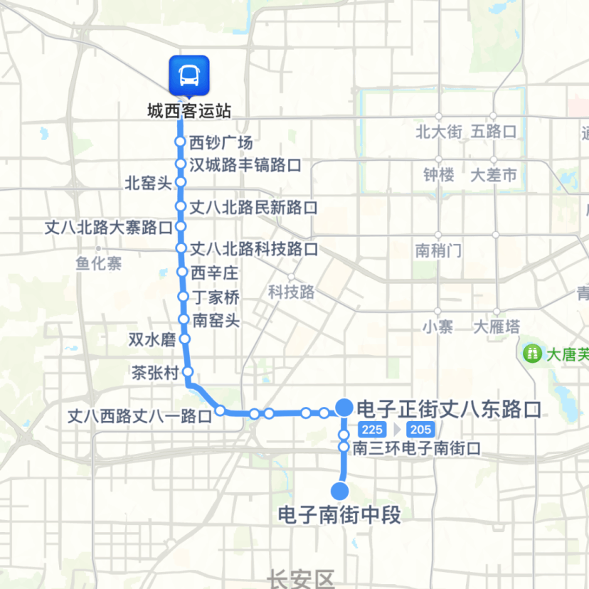 225路→电子正街丈八东路口→转286/124路→电子南街中段