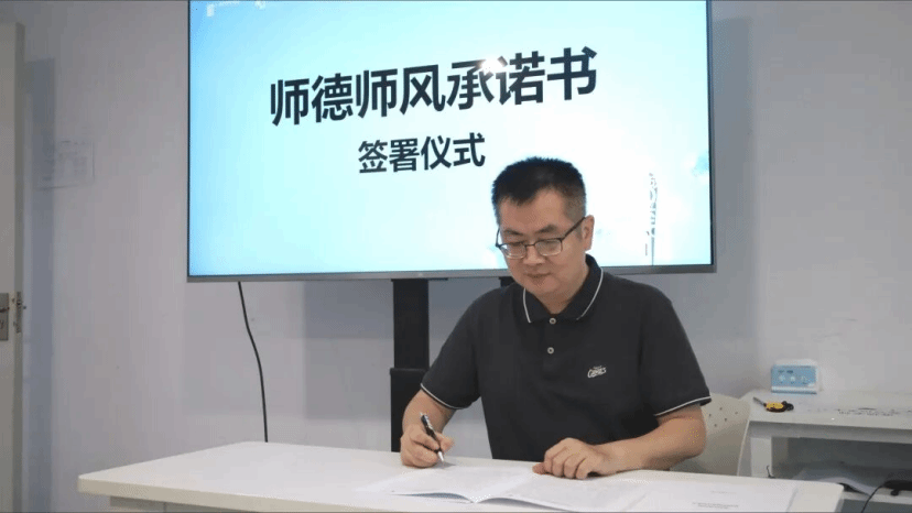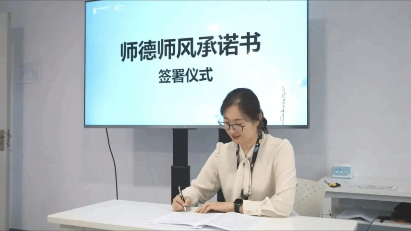随后,新入职教师代表们在现场郑重落笔,签下《师德师风承诺书》。