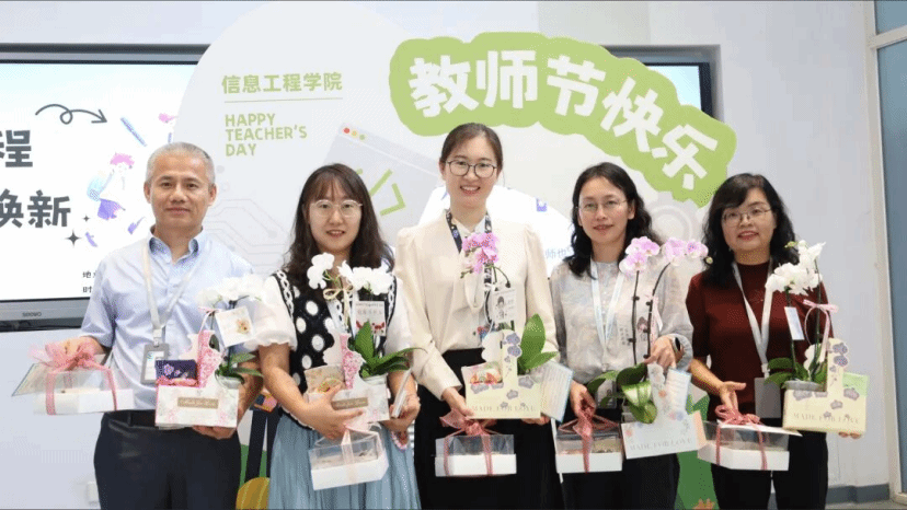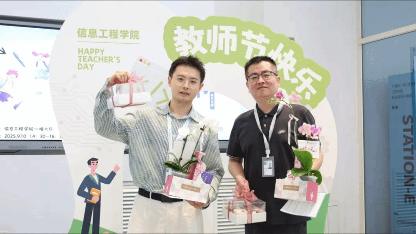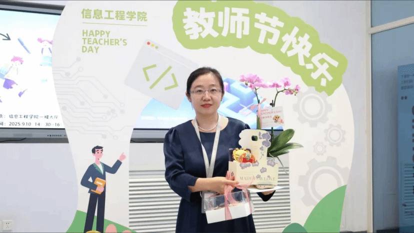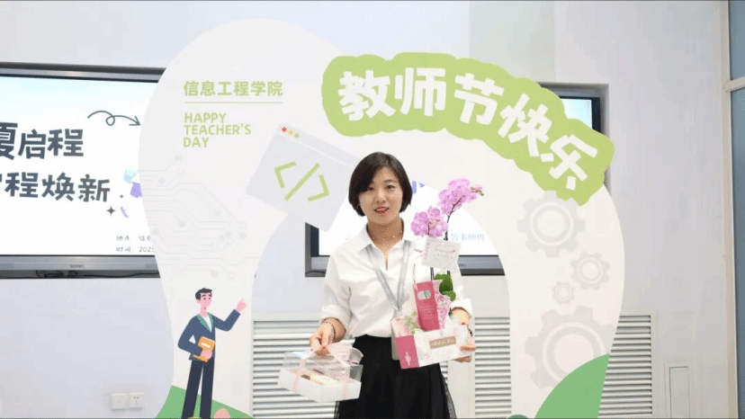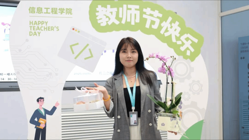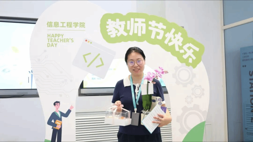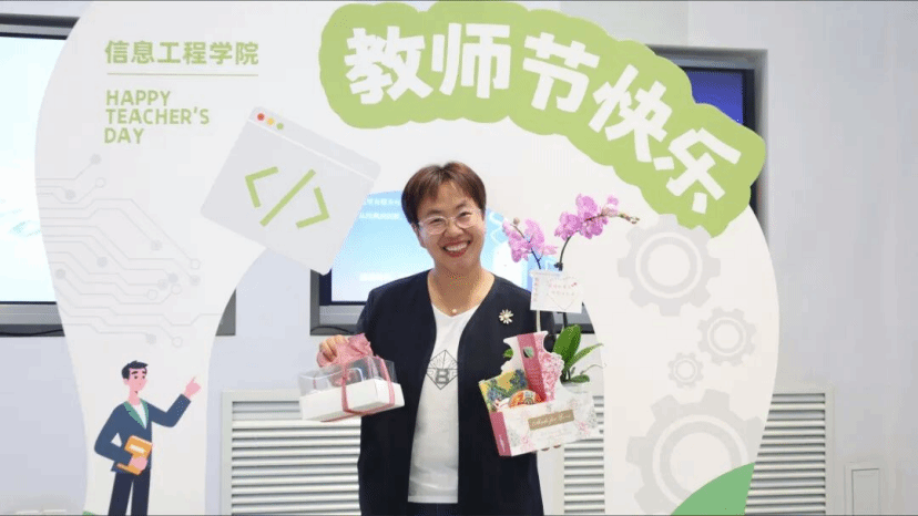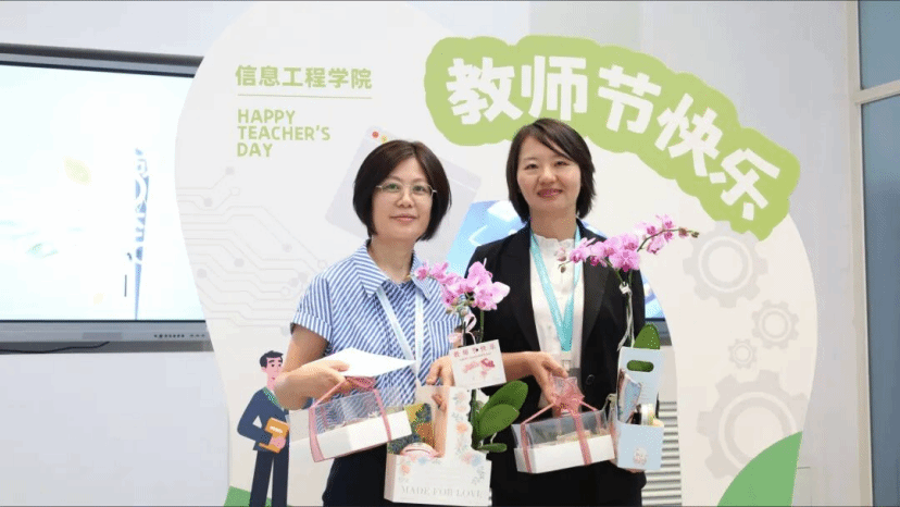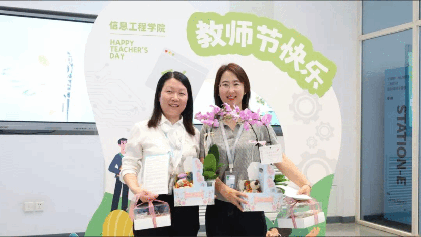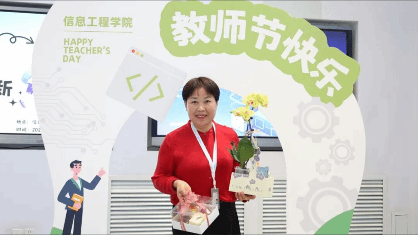 活动尾声,学院为各位老师准备了精美的节日礼物,大家纷纷在主题背景板前打卡留念,镜头定格下一张张洋溢着笑容的脸庞。
