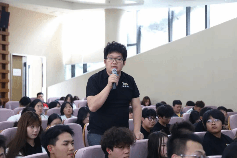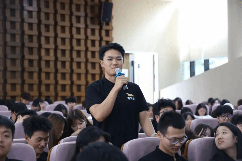 趣味互动,拉近距离:趣味互动环节持续5分钟,以游戏与问答相结合的形式展开,校企双方为积极参与的同学准备了精美礼品,陈丛老师通过自制的随机点名小程序调动氛围,同学们在互动中也增进了对订单班的了解。