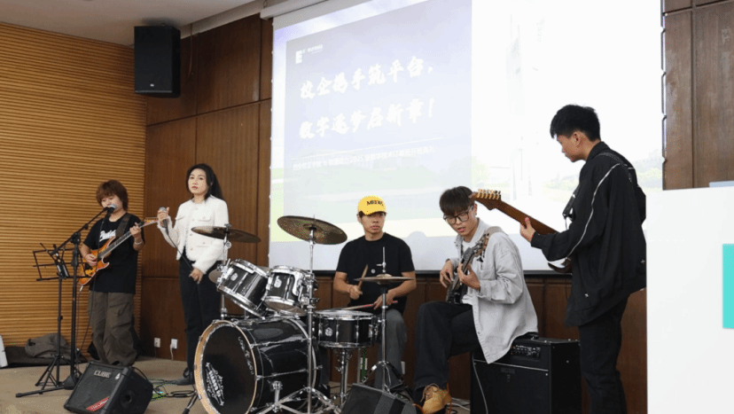 吉他社乐队表演以动感的旋律点燃全场,为仪式注入青春活力。