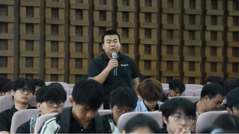 学长引路,传递力量:已在软通教育实习的大四学长马艳豪分享自身经历,坦言大一也曾迷茫,通过参与企业真实项目才明确方向。他称赞订单班有效打通校企衔接的“最后一公里”,建议学弟学妹拒绝“躺平”、勇于实践,多与企业导师交流,将订单班作为探索兴趣和积累经验的平台。他还表示自己仍在校内,欢迎同学们随时联系咨询,并鼓励大家“由此开始,随处可往”。