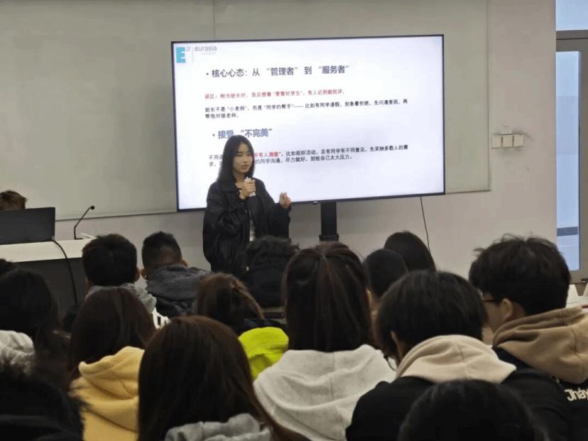学姐提到班干部应定位为服务者与沟通桥梁,通过共享文档、分组管理等工具提升效率。需具备责任心与耐心,组织活动以增强班级凝聚力,并在此过程中实现自我锻炼与成长。
