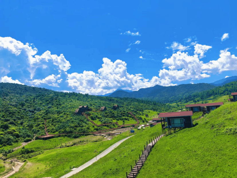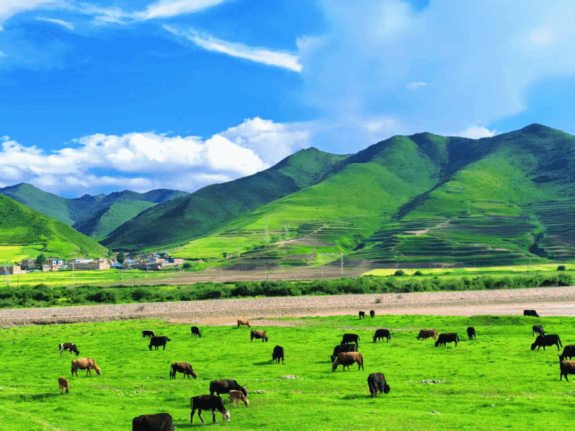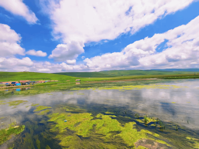 车轮驶向桑科草原,盛夏的草原如一幅纯净的Windows桌面铺展至天际。绿浪翻涌,牛羊如星点缀其上。天空蓝得令人屏息,白云仿佛触手可及。风拂过面颊,带着青草与野花最鲜活的清甜。