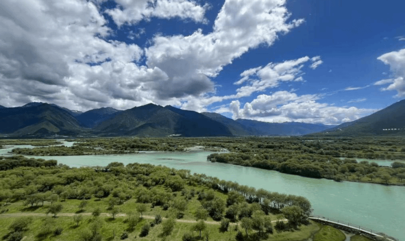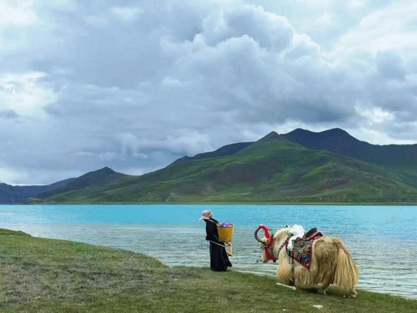 西藏林芝尼洋河风光 行走在羊卓雍措的牧人